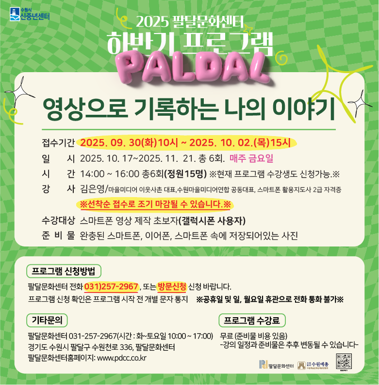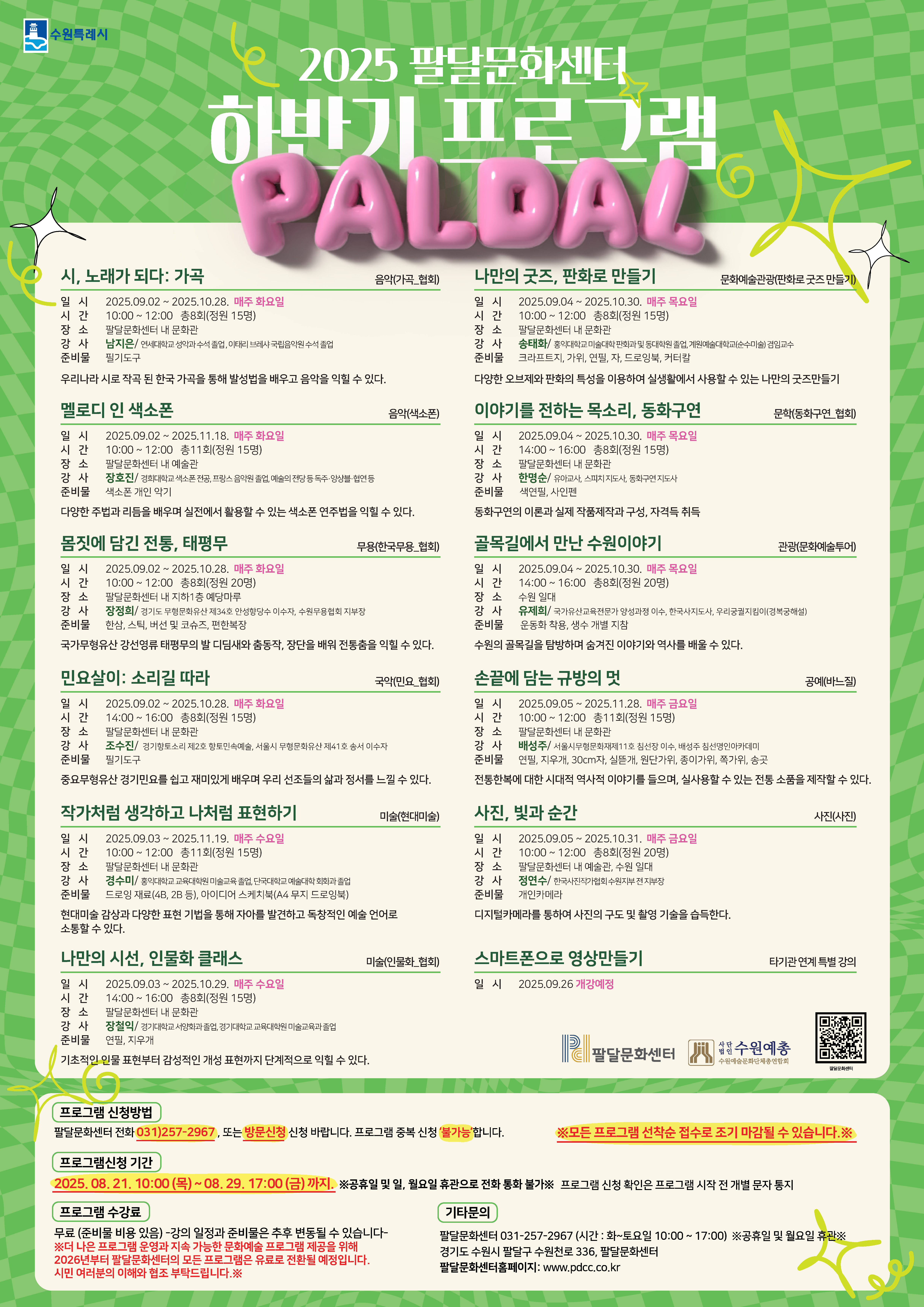 2025 팔달문화센터 하반기 프로그램(접수마감)